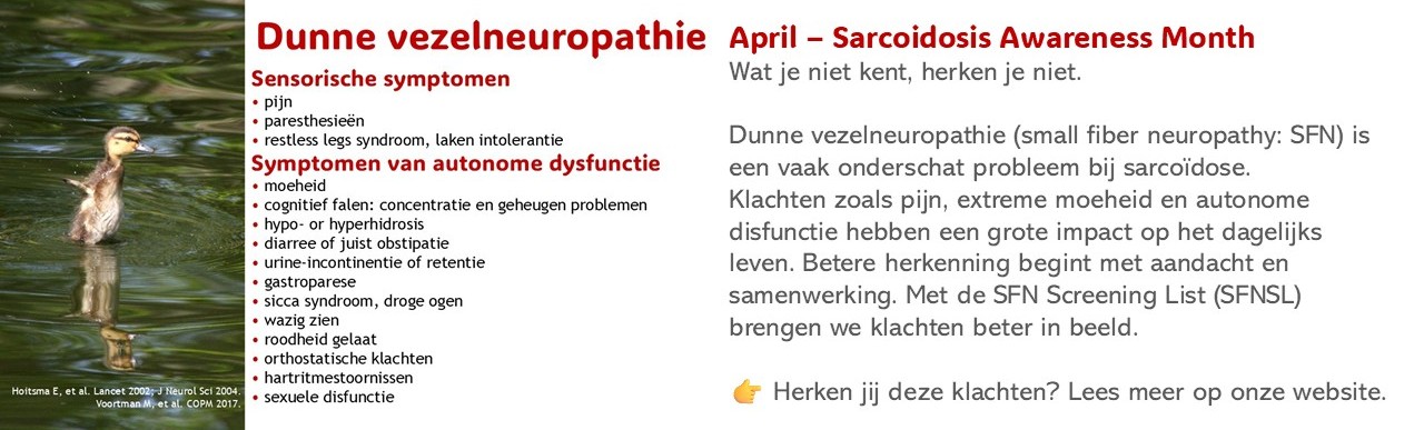 Aandacht voor sarcoïdose in Huisarts & Wetenschap In 2023 is in Huisarts & Wetenschap het artikel: ‘Sarcoïdose, een vaak miskende aandoening’, geschreven door Nellie Jans en Marjolein Drent verschenen. Het artikel […]