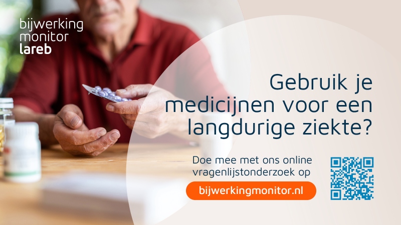 Bijwerkingencentrum Lareb onderzoekt hoe medicijngebruikers bijwerkingen ervaren. Door mee te doen aan de online Bijwerkingmonitor draag je bij aan betere kennis, herkenning en behandeling van bijwerkingen. Je helpt niet alleen anderen, maar krijgt ook meer inzicht in je eigen ervaringen.